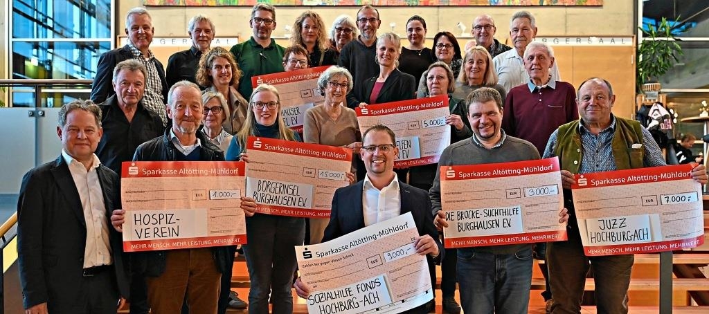 In Not geratenen Bürgern der Gemeinde Hochburg-Ach und der Stadt Burghausen sowie Hilfsorganisationen unter die Arme greifen: Das ist das gemeinsame Ziel des Salzach-Brückenlaufs. Beim 23. Brückenlauf, der wie jedes Jahr im Oktober stattfand, wurden nicht nur Rekordteilnehmerzahlen verzeichnet, sondern auch eine Spendensumme so hoch wie noch nie gesammelt. 43 000 Euro sind dabei zusammengekommen, am Dienstag wurden die Schecks den Spendenempfängern im Bürgerhaus übergeben.